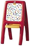 This unique easel from Step2 doubles the fun for little artists! It features two hinged easels, which allow two children to fire up their creative skills at the same time - perfect for siblings and playdates! One side of the easel features a chalkboard and the other features a magnetized dry erase board, perfect for the 73 magnetic letters, numbers and signs included with the easel. A clip on each side allows children to draw or paint on paper as well. For children aged 3 years and up.